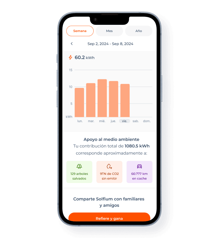 Con Solfium, no solo he logrado que mi hogar sea más eficiente y sostenible, sino que también tengo el control total sobre mi consumo energético gracias a su aplicación en tiempo real.